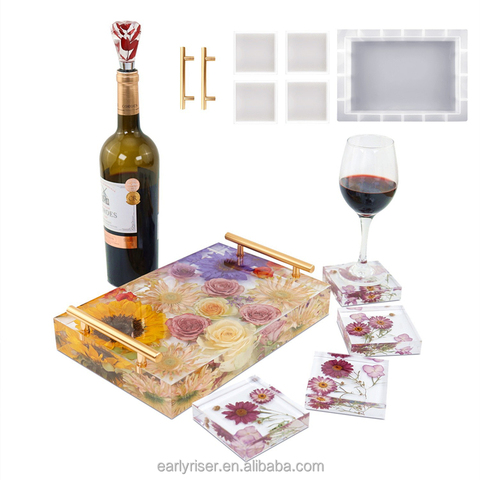 Early Riser DIY bandeja rectangular grande molde epoxi personalizado posavasos de jabón molde de silicona con mango de metal